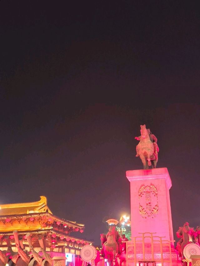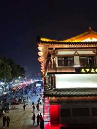 As the sun sets, Xi'an transforms into a dazzling spectacle of lights and shadows. The City Wall and Bell and Drum Towers glow majestically against the dark sky, their reflections shimmering on the surrounding streets. The Muslim Quarter awakens with vibrant energy, as food stalls sizzle under red lanterns, filling the air with aromatic spices. Locals and visitors alike stroll along the illuminated avenues, while traditional performances echo in public squares. For a magical view, climb the City Wall to see the ancient city bathed in golden light, or drift along the Tang Paradise lake with its mesmerizing light shows. Xi'an at night is an unforgettable fusion of history, culture, and modern vitality. #travel