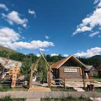 #TravelChat Xinjiang Travel Kanas Old Village This village is lined with rustic wooden houses nestled amidst the beautiful natural surroundings of mountains and forests. The atmosphere is wonderful, the sky is beautiful, and the view is stunning. The village is charming, with rows of small wooden houses and flowers lining the paths, including the lovely little yellow flowers. The photos are beautiful and fun. Everywhere is beautiful, and there are always plenty of tourists. Location: This village is located deep in the Altai Mountains in the Xinjiang Uygur Autonomous Region, China. #Xinjiang #TravelChina #KanasOldVillage #TravelChat