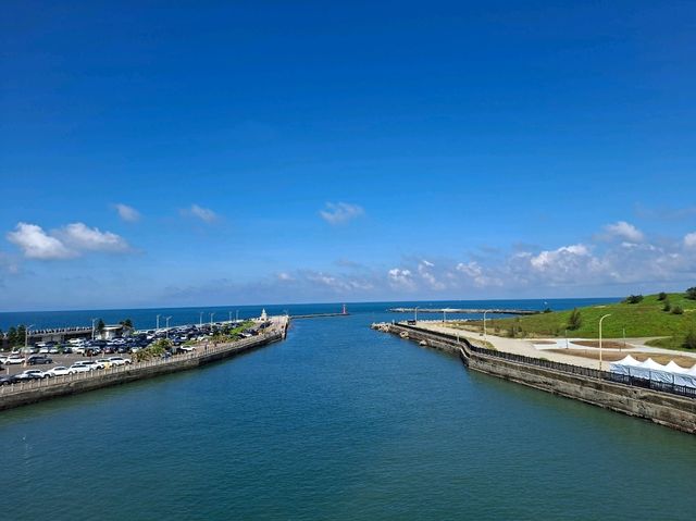 Yongan Fishing Harbor is a famous tourist spot in Taoyuan, known for its picturesque scenery. Fishing boats dot the blue sky and clear sea, complemented by a beautiful arched bridge beside the harbor, creating postcard-worthy views. Visitors can not only enjoy the harbor's scenery but also soak in the relaxing seaside atmosphere. During sunset, the reflection of the sun on the water and the bridge adds a romantic touch. Whether you're strolling, taking photos, or simply enjoying the sea breeze, Yongan Fishing Harbor offers a delightful experience and is a perfect place to unwind and explore.