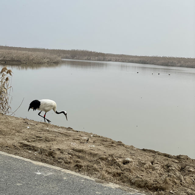 [Yancheng, World Natural Heritage Site] It's a thrill to see a red-crowned crane and a taxi