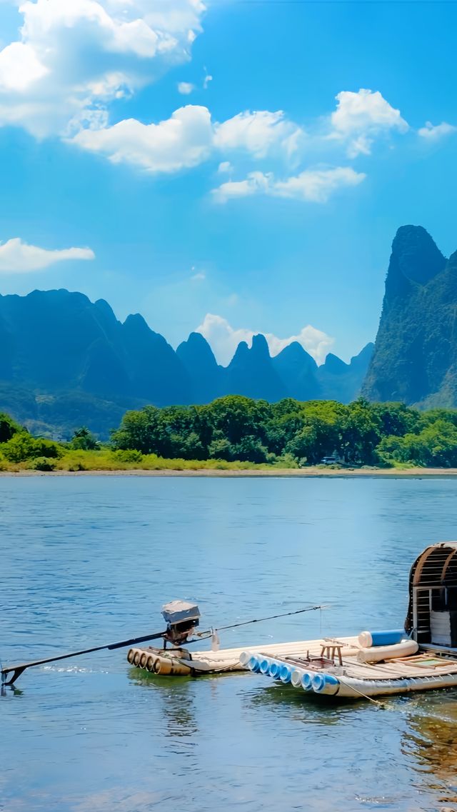 Yangshuo~ Sailing on the emerald waves, people are traveling inside a painting!