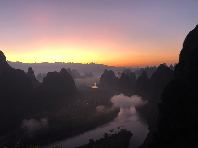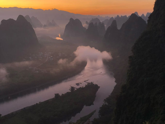 After watching the Eternal Love in Yangshuo, I took a taxi directly from Yangshuo to Xingping Ancient Town. It was already 7:30 PM when I arrived. I had a quick bite and then took a taxi to the pier to participate in the Osprey Fishing event. It was super fun, very unique, and very interesting. I highly recommend it! 👍 After returning, I showered and went to bed. The next day, I went on a Li River cruise. A taxi cost 20 yuan. (Background image)
