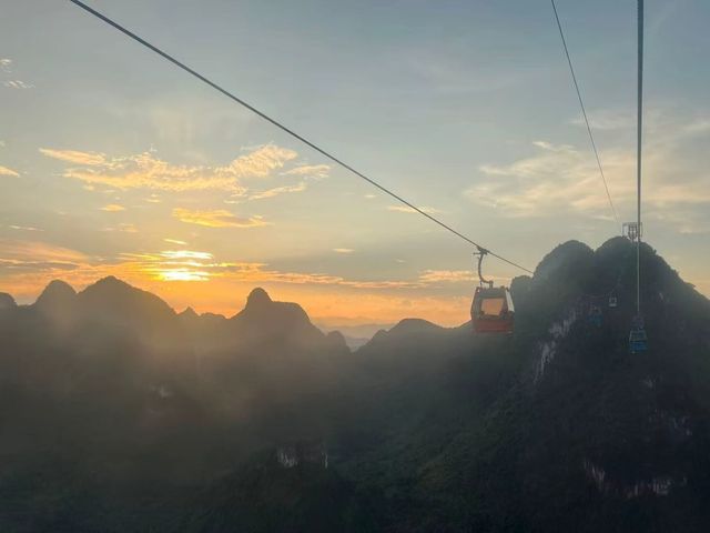 Stunning Heights at Ruyi Peak Cableway Scenic Area 🚡🌄 Get ready for jaw-dropping panoramas as you glide above Yangshuo’s limestone karsts and emerald valleys! Ruyi Peak Cableway delivers the most magical mountain views—perfect for adventure seekers and sunrise chasers. 🌟 Recommended Route: Arrive before 9 am for tranquil trails and misty sunbeams. Start your ascent via the cableway from Peak Ruyi Scenic Spot (Gaotian Town, Yangshuo County, Guilin). The cable ride is smooth, but be ready—there are plenty of steps to climb once you’re up top, so comfortable shoes are a must! 🏞️ Must-Do Experiences: Take your time wandering the summit pathways—the scenery changes with every angle. Pause at the highest platforms for 360° vistas of rolling hills and winding rivers. Don’t forget to catch the breeze at the celebrated “Cloud Bridge,” a glass walkway that seemingly floats above the clouds! 📸 Top Insta-Worthy Photo Spots: Snap the iconic cable car shot against misty mountains, pose on the “Cloud Bridge” with the karst landscape behind you, and capture the sweeping valley views from the main viewing platform. 🔍 Practical Visiting Tips: Peak hours hit after 9 am—so set your alarm early for peaceful views and easy photos. Pack water, bring sunscreen, and check weather updates (the clouds roll in fast!). The area is open daily, 08:00–17:30, with an admission fee of ¥208. ⚠️ Precautions: Some paths are steep—take your time and hold onto railings. Sturdy shoes will make your climb way more comfortable! #Yangshuo #RuyiPeak #ScenicViews #ChinaTravel #NatureEscape