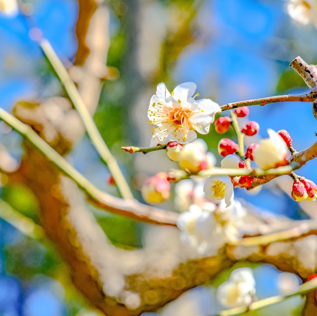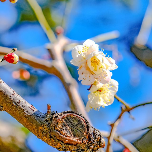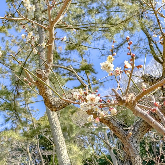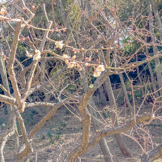 Sankeien Garden is home to several plum trees, or plum groves. This Chinese plum grove is located a little distance from the garden's main pond, but combined with the surrounding terrain, it creates a mysterious atmosphere. Visitors were captivated by it. #PlumBlossoms #SankeienGarden