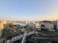 Day 1 of a 4-day Tokyo trip starts at the Mercure Hotel Yokosuka, located in Yokosuka, Kanagawa Prefecture. Yokosuka is a port city about 40 minutes further by train from Yokohama. Known as a military city due to the presence of a U.S. Navy base, I managed to secure a stay at this hotel at an affordable price, booking it early last fall. The cost, including breakfast, is in the 9,000 yen range. The hotel is closer to Keikyu Shioiri Station than JR Yokosuka Station, so I use my Suica card to board the Keikyu line. After finishing my schedule in Yokohama past 8 PM, I check into the hotel a little after 9 PM. Tempted by unlimited champagne, I end up drinking too much. Once in the room, I take some photos for review purposes (always a priority!) and then collapse onto the bed, sleeping for about two hours. After a short nap, I recover my energy. The room is a standard one, but being a corner room with an ocean view, it offers a spacious layout with five windows, providing an open and airy feel. I heard the hotel used to operate under a different name before becoming Mercure. While the building is slightly older, the high-floor rooms are spacious. Uniquely, the room features a large refrigerator with a freezer and a microwave. I take a stroll to Yokosuka-Chuo Station, stopping by a convenience store to buy ice, ice cream, and snacks like rice balls and chicken. I heat them up and make a highball to enjoy a late-night meal. The next morning, I wake up to a view of Yokohama's Landmark Tower in the distance. Breakfast includes local specialties like Navy Curry, a variety of fruits, and other delicious menu items. After breakfast, I take a walk in Verny Park, located in front of the hotel. The hour-long stroll offers views of naval ships and plenty of flowers, making it a great walking route. There's also an ocean-view Starbucks nearby, filled with Americans, giving off a vibe similar to Okinawa's American Village. English is heard everywhere. After checking out, I head to Miura City. Thank you.