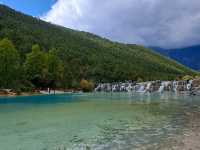 If you're visiting Lijiang, Yunnan, don't miss Blue Moon Valley. This natural wonder boasts stunning waterfalls, crystal-clear waters, and breathtaking views of the Jade Dragon Snow Mountain. 🌊 Atmosphere & Scenery The water in Blue Moon Valley is a mesmerizing blue-green, resembling the reflection of the moon 🌙. Surrounded by mountains, waterfalls, and wooden bridges, it's a perfect spot for strolling and photography. The cool and refreshing air adds to the charm. 🚶♀️ Activities & Strolling Take a leisurely walk along the wooden pathways and scenic bridges, capturing beautiful photos at every corner. You can also enjoy a small boat ride to admire the lake from a lower perspective. Don't miss the chance to take photos with the Jade Dragon Snow Mountain as a stunning backdrop—it's truly a magical experience. For anyone visiting Lijiang, Yunnan, this is a must-see destination that won't disappoint!