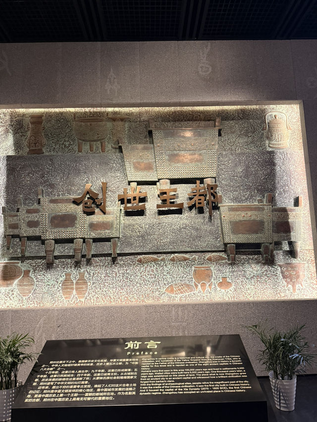 Zhengzhou Museum is quite large. Upon entering, you are greeted by numerous historical figures, with the Yellow Emperor prominently in the center and Shang Tang beside him. Overall, the collection is quite rich, and the experience is enjoyable. The museum focuses on the Shang Dynasty as the cradle of civilization. One particularly interesting exhibit is a replica of the 'Mother Stone.' According to legend, during Yu the Great's flood control efforts, he transformed into a black bear to open mountains. His wife, Tushan, accidentally struck a stone that emitted a drum-like sound while delivering food to him. When Yu reverted to human form to chase after her, he was blocked by a rock. He then called out to his wife to help him give birth to their son. At that moment, the rock split open, and Xia Qi was born. The original stone is located on Mount Song, but the museum has created a replica for display. Initially, I thought it was a piece of installation art. The museum also showcases the excavation site of the Four-Sided Ding. The most fascinating part was the demonstration of how bronze artifacts were made, accompanied by interactive games. In the 'Artistic Realm' section, I saw the fragmented Guanyin statue, often referred to as the 'Eastern Venus.' There were many intriguing exhibits that I personally found captivating. However, I felt a bit regretful that I didn’t have time to visit the Henan Museum. 🥹