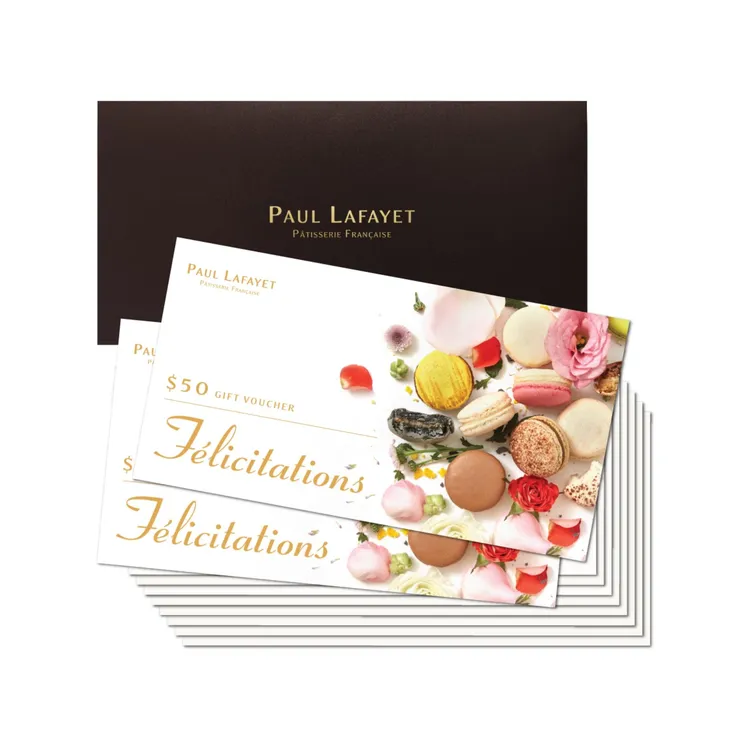 Add sweetness and happiness to your special day with Paul Lafayet's carefully crafted wedding gift vouchers, allowing couples to enjoy exquisite French desserts during their most important moments.