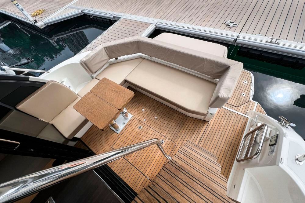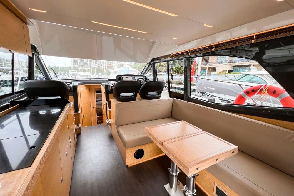 40-foot three-deck power flybridge yacht in Bavaria, Germany. The top flybridge offers panoramic sea views and refreshing breezes, the middle deck is perfect for casual relaxation, and the lower deck features a practical layout with private resting areas. Ideal for family vacations or gatherings with friends, ensuring a delightful and comfortable time at sea.