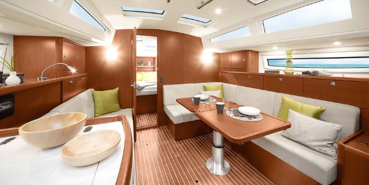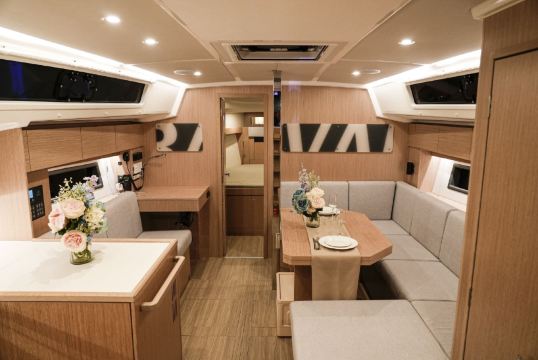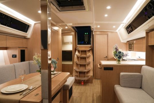 The Bavaria V42 sailing boat in Germany offers spacious comfort with its 42-foot size, featuring a basic leisure area and kitchenette inside, plus an open deck perfect for leaning against the railing and watching the waves. Whether it's a family coastal cruise or an adventure with friends chasing the wind, it provides a relaxing and enjoyable time at sea.