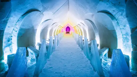 Discover a hotel entirely built of ice and snow. Visit one of Finland's most iconic winter attractions—a hotel completely carved from ice.