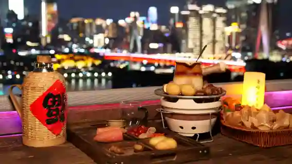 Enjoy warm tea by the fireplace along with sizzling barbecue, paired with panoramic views of the Qiansimen Bridge and Hongyadong. Savor your meal while admiring the sparkling lights along both rivers, perfectly blending scenery with lively atmosphere for ultimate relaxation.