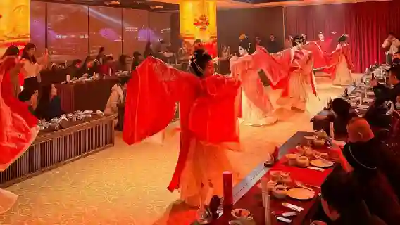 Immersive cultural experience: Professional actors portray historical figures like Emperor Tang and Li Bai, accompanied by Tang dynasty music and dance in authentic costumes. With elaborate stage sets, this 90-minute performance transports you to the golden age of Tang Dynasty, offering both visual splendor and historical depth that far surpasses ordinary dining experiences.
