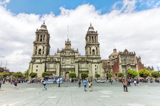 ▲ Constitution Plaza is the heart of Mexico City, rebuilt after Spanish colonists destroyed Tenochtitlan, the capital of the Aztec Empire. It has always been bustling—whether in the 16th century (built on ruins), the 18th century (a market teeming with vendors), or even today, the liveliness never stops. Visitors and locals alike can find the joy they seek here. Every morning at 8 AM and evening at 6 PM, Mexican soldiers emerge from the National Palace to perform the flag-raising and lowering ceremony.