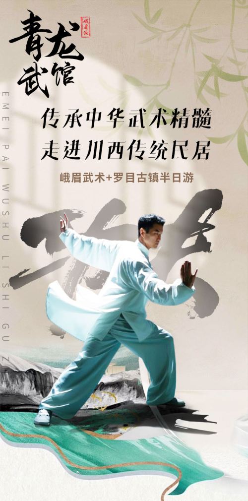 Emeishan Qinglong Martial Arts Hall + Luomu Ancient Town 1-day tour