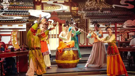 The performance and banquet are synchronized, with each dish accompanied by a unique musical and dance performance. The 360-degree panoramic screen and realistic scenery allow you to fully immerse yourself in the elegant atmosphere of the Tang and Song dynasties.