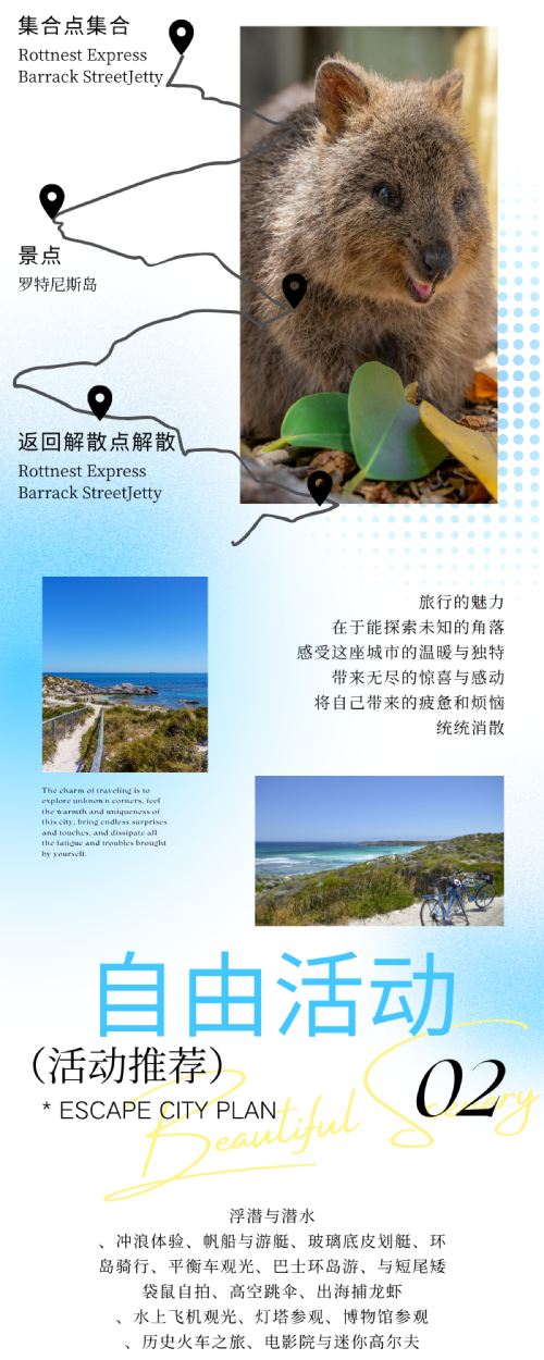 Rottnest Island boasts 63 beaches and 20 bays, making it a paradise for beach lovers. Whether you want to go diving, snorkeling, swimming, surfing, or simply relax and rejuvenate, the island's pristine white sands and crystal-clear turquoise waters will meet all your needs.