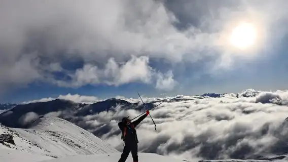 Sit amidst the sea of clouds, converse with the rising sun, and toast to the grandeur of heaven and earth together.