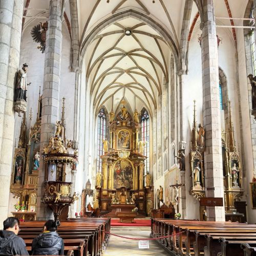 ▲ The Church of St. Vitus houses 15th-century frescoes, a massive Baroque pipe organ from 1716 on the second floor, as well as stone pillars, sanctuaries, and exquisite domes, all of which are well worth admiring. The Church of St. Vitus stands by the Vltava River, with its spires towering into the clouds. Constructed during the late Gothic period between 1407 and 1438, it was later renovated. In 1995, it was designated as a National Cultural Monument.