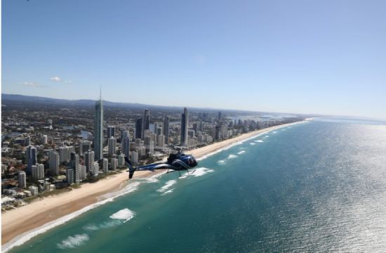 Flight routes and durations may vary due to flight conditions and air traffic control. The "Gold Coast City Tour" will take you flying over the Broadwater, then across the golden sands of Main Beach, and south along the coastline, passing through Surfers Paradise—home to the city's towering skyscrapers including the iconic Q1 building which stands at 1,056 feet tall.
