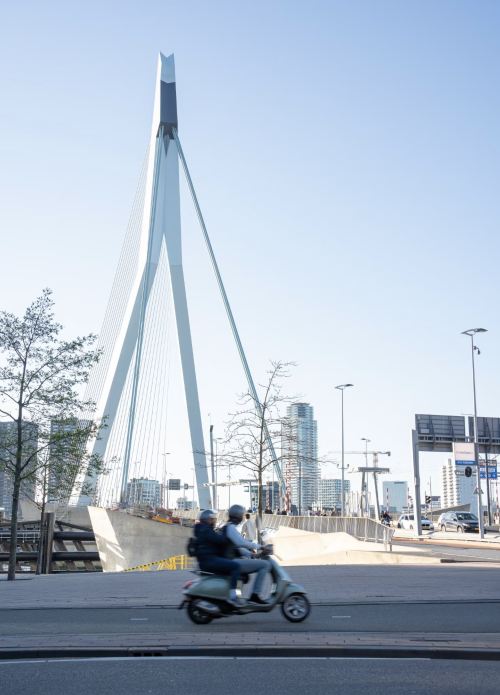 ▲ The Erasmusbrug is a famous landmark in Rotterdam, renowned worldwide as the "Swan Bridge." This impressive structure features 2,600 steps, multiple lanes, and accommodates vehicles, trams, bicycles, pedestrians, and even skateboarders, making it an outstanding example of Dutch pragmatism.