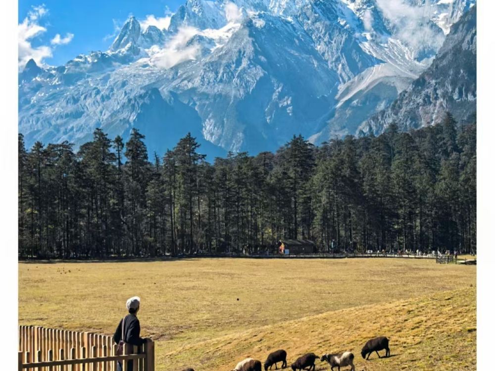 Hotels merchandise Lijiang Old Town will pick up guests and take them to Jade Dragon Snow attraction, a journey of approximately 30 minutes. Next, proceed to **Blue Moon Valley** (electric cart fee of 60 RMB per person, payable separately). Blue Moon Valley is located at the foot of Jade Dragon Snow Mountain and is world-renowned for its majestic snow-capped mountains, azure lakes, and magnificent canyon scenery. The valley, named for its crescent shape, is said to be the prototype for Blue Moon Valley in British writer Hilton's novel "Lost Horizon." The three main attractions are Jade Liquid Lake, Mirror Lake, and Blue Moon Lake, where you can admire natural snow lakes formed by melting snow from Jade Dragon Snow Mountain. Depending on the cable car schedule, take the **Yak Meadow Cableway** to visit **Yak Meadow**. After the tour, gather and return to Lijiang Old Town. Explore **Lijiang Old Town** on your own, a World Heritage Site, to experience the simplicity and cultural heritage of the Naxi people. Stroll through the streets and appreciate the unique ancient town scenery where "every house has a stream flowing around it, and every household has willows that rival those of Jiangnan."