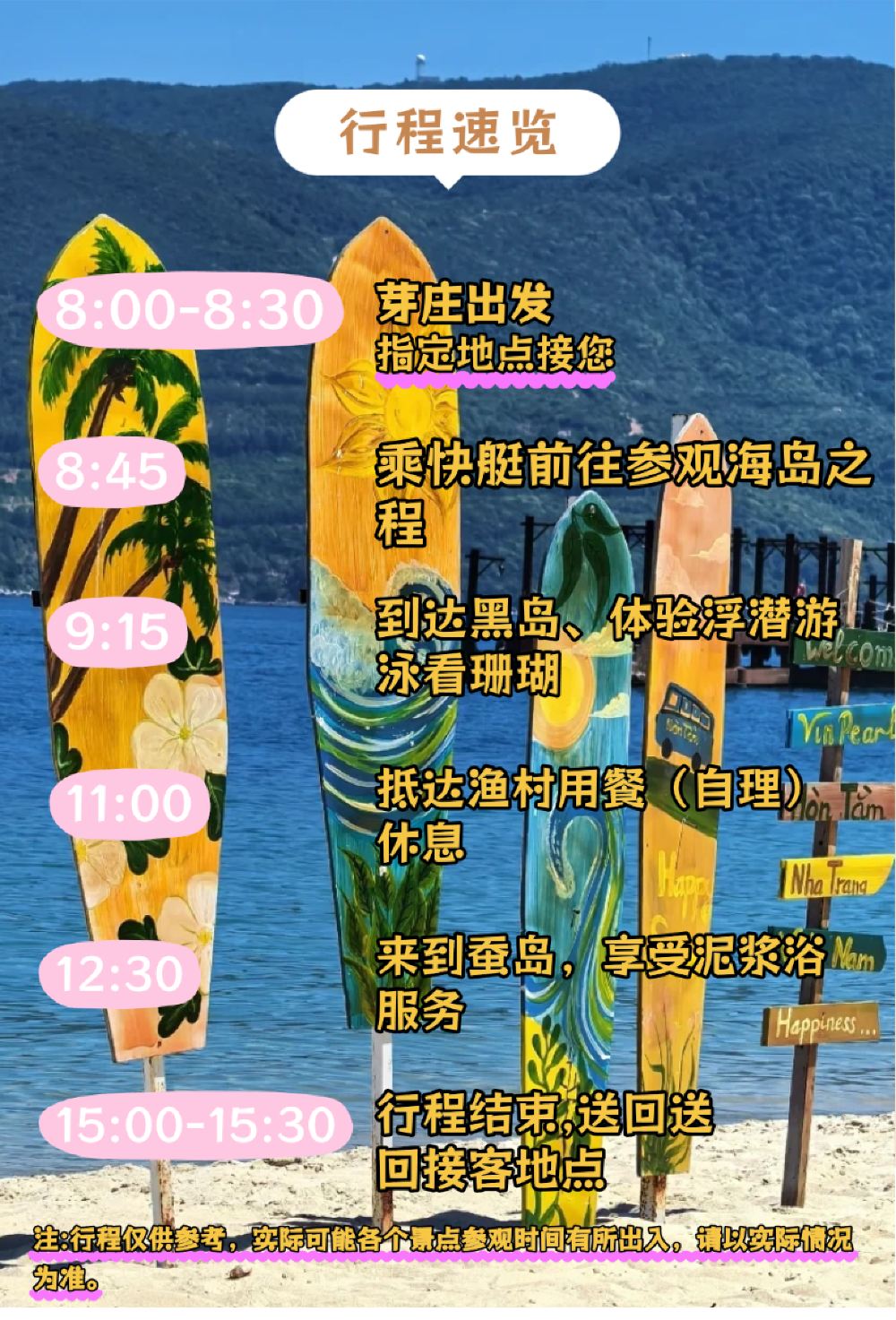 Attractions: Hon Mun (excluding chairs on Hon Mun Island), Hon Tam Island, Fishing Village
