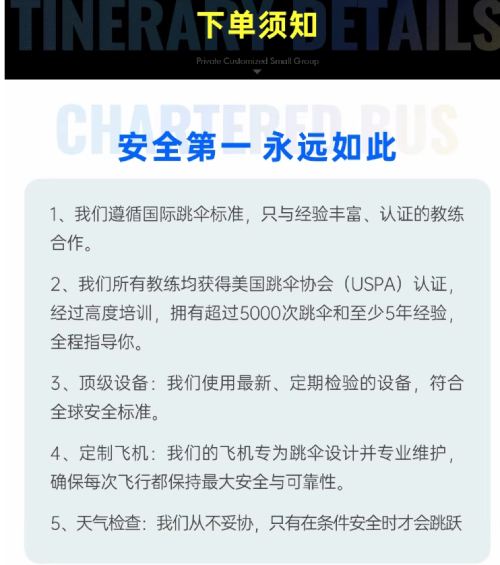 2. Skydiving is weather-dependent. If conditions are unsafe, the jump may be postponed, rescheduled, or canceled. Safety is our top priority, and the final decision rests with the chief instructor.