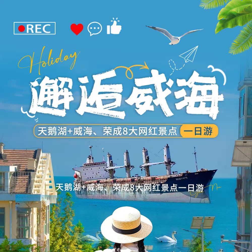 1-Day Tour from Qingdao to Weihai Huaxia City Scenic Spot + Stranded Cargo Ship Blueways + Happiness Gate with Bilingual Service