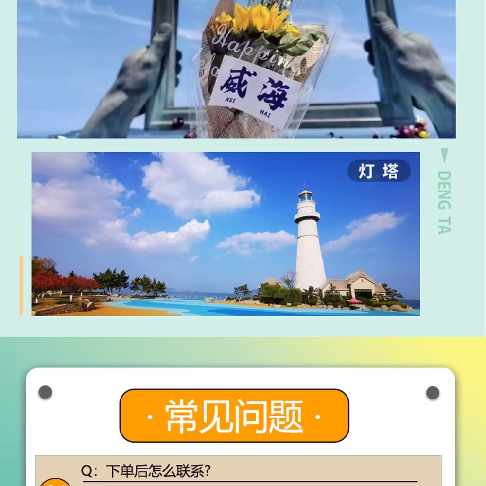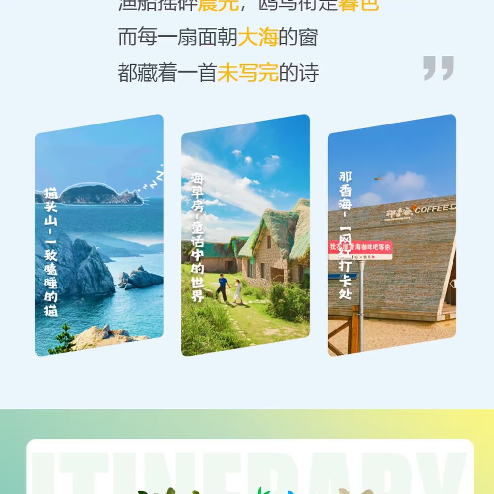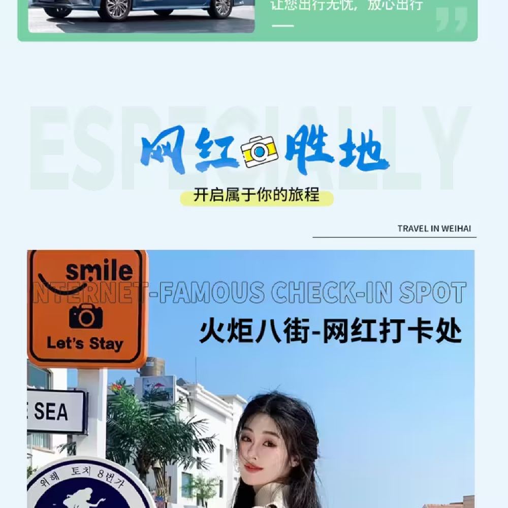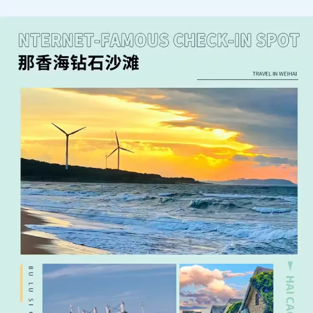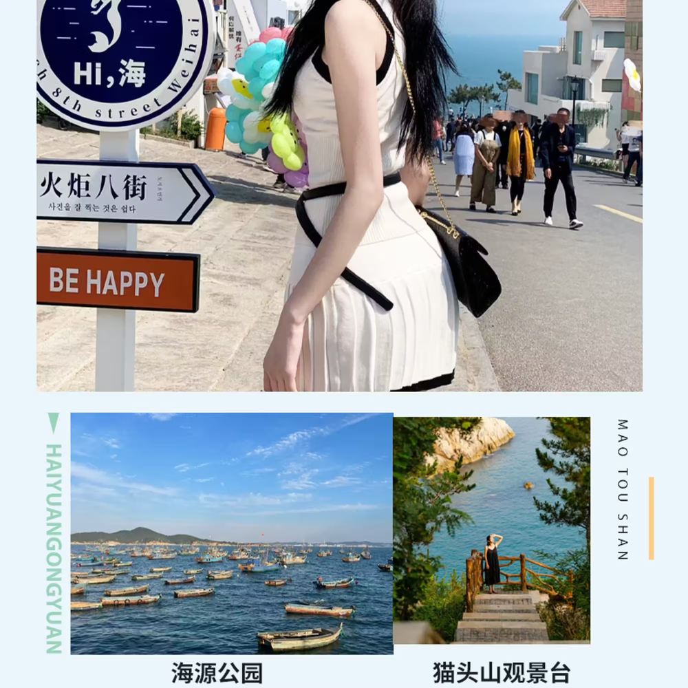 A one-day tour of Shandong Weihai's landmark attractions: Torch Street, Naxianghai, Bluewest, and Maotou Mountain