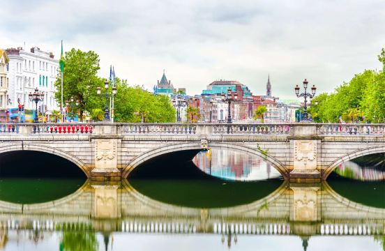 ▲ This is a bridge with lamp posts and arches spanning the River Liffey, offering splendid views of the city along the river.