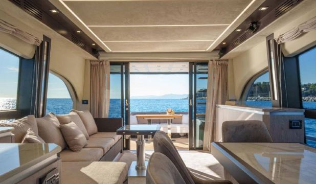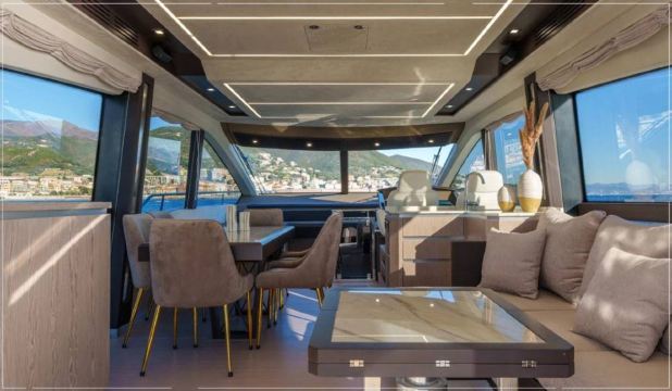 The Italian Sessa F68 Flybridge luxury yacht features sleek lines for smooth sailing with minimal turbulence. Its interior boasts refined soft furnishings, complete with a leisure area and basic kitchen and bathroom facilities. Whether for a short family getaway or a fun outing with friends, it offers a delightful experience at sea.