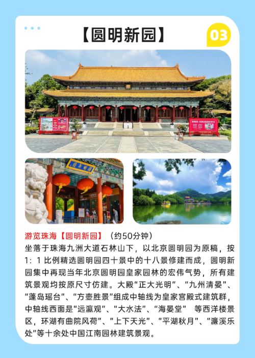 This route is incredibly romantic: "The New Yuan Ming Palace - Seaside Park - Xianglu Bay Beach - Zhuhai-Macau Bay Night Cruise"