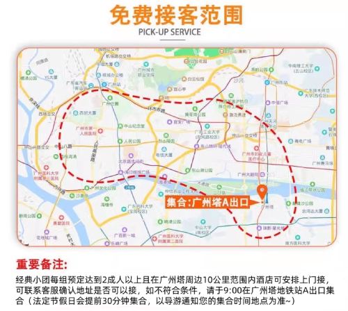 Group confirmation notice: Tours available daily with a minimum of 1 traveler! For families with 2 or more members, hotel pickup service is provided within designated areas of Guangzhou. Guests outside the service area should proceed directly to the meeting point.