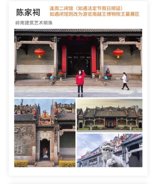 The Chen Clan Ancestral Hall is closed on Tuesdays (extended during statutory holidays), with visits redirected to the Tomb Exhibition Area of the Nanyue King Museum.
