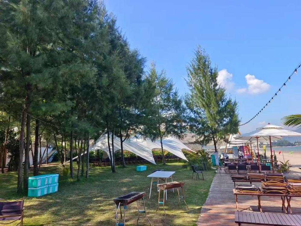 The Nanao Qiniang Mountain Picnic Farmhouse is located behind Dongshan Pier in Dapeng Nanao Street, Shenzhen. The garden features rolling hills, lush trees, and fresh air. Strolling along the paths allows you to escape the hustle and bustle of the world and embrace nature, with the green shade providing shelter along the way, offering a full enjoyment of the mountain scenery. It is truly a rare "natural oxygen bar." The farmhouse is about a 1-hour drive from downtown Shenzhen and just a 10-min drive from Nanao, Yangmeikeng, Jiaochangwei, and the beautiful beaches of Xichong, making it an ideal destination for company team-building, family gatherings, and parent-child outings! The farmhouse is equipped with recreational facilities and amenities to cater to different needs, such as off-road mountain vehicles, farmhouse picnics with firewood cooking, live-action CS battles, a parent-child bear-themed children's play area, fruit tree forests, DIY barbecues, a health and leisure area, kiln-roasted chicken and sweet potatoes, a company team-building base, and more. Activities include a children's play area, live whack-a-mole, pottery making, loach catching, rainbow slides, karaoke, parent-child vegetable planting, table tennis, billiards, mahjong, boating, swings, hammocks, and other activities.
