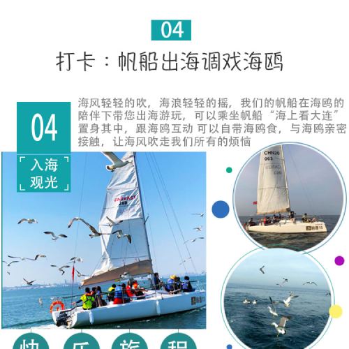 Xinghai Square - Lotus Hill Viewing Tower - Drive across the Sea Bridge - Sailing Boat Cruise - Binhai Road - Fisherman Pier - Bangchui Island - Tram - Venice Water Town - Russian Street of Dalian - Return to hotel around 17:00