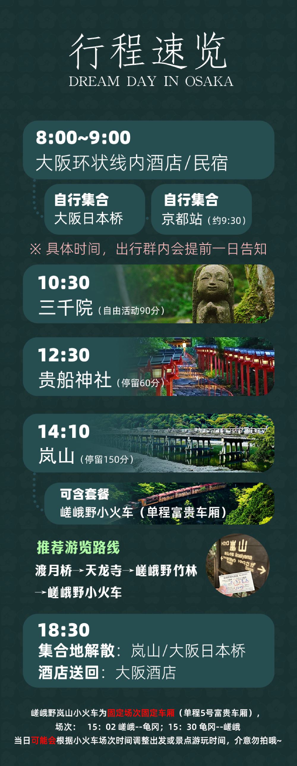 Spirited Away Anime Tour: Osaka Katsuo-ji Temple, Atago Nenbutsu-ji Temple, and Arashiyama Hiking Day Tour