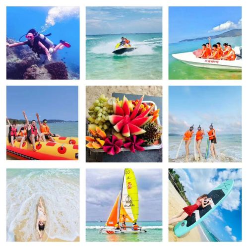 2. Exciting Water Activities: Thrilling jet ski rides + high-speed banana boat + free snorkeling + bodyboarding + trending paddleboarding, glass-bottom boat photography, and more