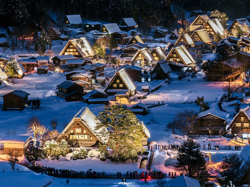 Shirakawa-go, surrounded by mountains on all sides and interlaced with rice fields, is known as a kingdom of forests and streams. It was designated a UNESCO World Heritage Site in 1995 and is famous for its unique gassho-style houses. The village preserves more than 100 traditional buildings of various sizes, and its scenery is beautiful throughout the year—cherry blossoms in spring, lush greenery in summer, colorful foliage in autumn, and a snow-covered fairy-tale village in winter.