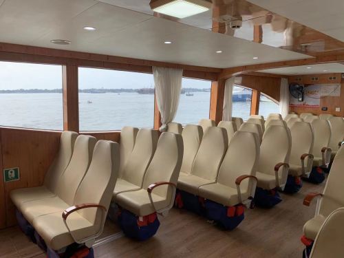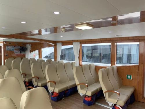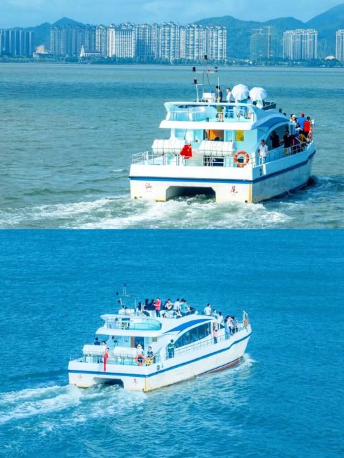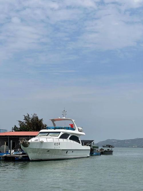 Shanwei 58-seat luxury yacht charter: Capacity for 58 people, route: Zhongshan Ferry (boarding point) - Mt. Fengshan Temple Tourist Area - Small Island Fishing Village - Artificial Beach - Shangmei Square - Liyuwei - Shatian Peninsula - Poly Jinding Bay - Roman Square - Zhongshan Ferry (disembarking point)