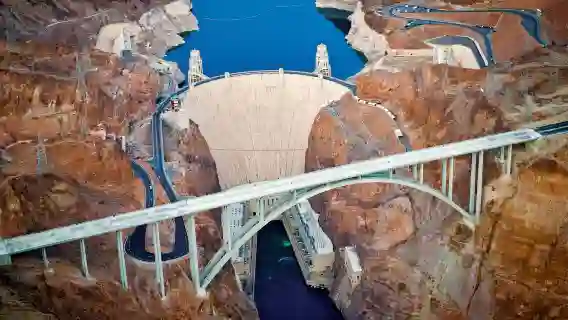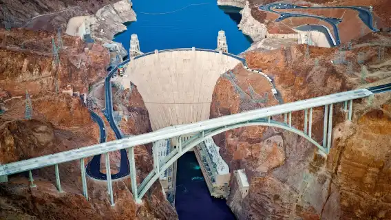 Marvel at the Hoover Dam, the Colorado River, and Black Canyon from 900 feet high above on the Mike O'Callaghan-Pat Tillman Memorial Bridge.