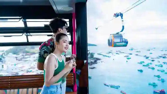 Phu Quoc Island South Island iconic attractions: cross-sea cable car, Sao Beach, pepper farm, Ho Quoc Temple, Sunset Beach, Sunset Town, Kiss Bridge Phu Quoc, island water park