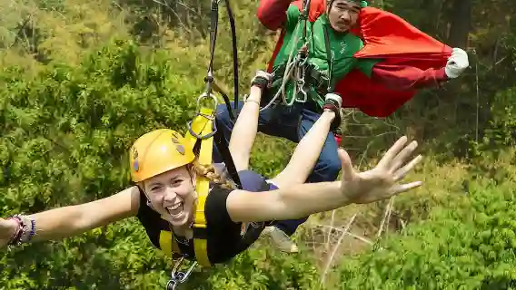 Enjoy the exhilarating flying experience of northern Thailand's lush tropical rainforests from the air