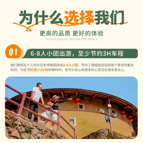 All Tulou tour routes are non-refundable and non-changeable once booked during public holidays (including New Year's Day, Lunar New Year, Qingming Festival, Labor Day, Dragon Boat Festival, Mid-Autumn Festival, and National Day) and other special dates. Due to high visitor volume, the attraction may experience congestion, requiring patience during waiting periods with no compensation provided. Some tour vehicles may operate without staff, only including local in-park commentary. Small group tours may involve shared transfer arrangements between single and double routes. We appreciate your understanding!