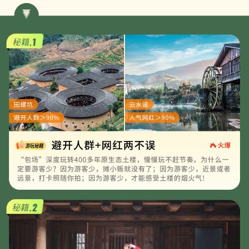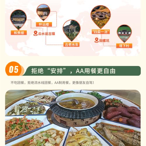 6. To protect the Tulou buildings, most of them are not open for upstairs visits as per the attraction's regulations. We appreciate your understanding! Local villagers within the Tulou attraction operate stalls selling specialty products like tea and other small goods. If approached by villagers promoting their goods during your visit, please use your own discretion when making purchases, as our staff do not recommend buying these items and cannot guarantee their quality.