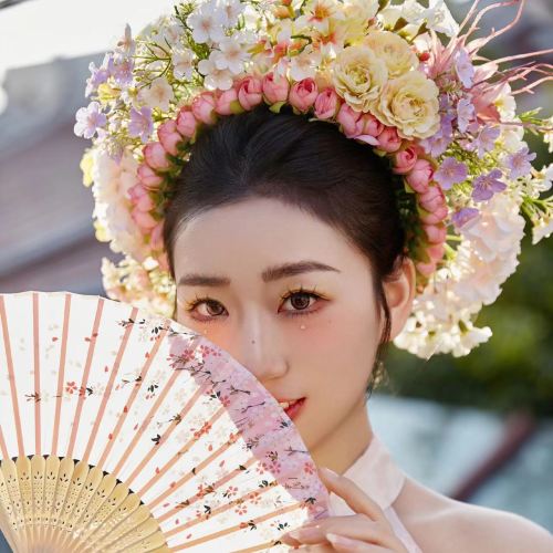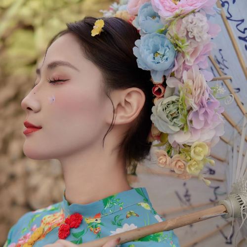 Makeup + Hairpin Flowers + One Outfit + (Internet Celebrity Makeup)