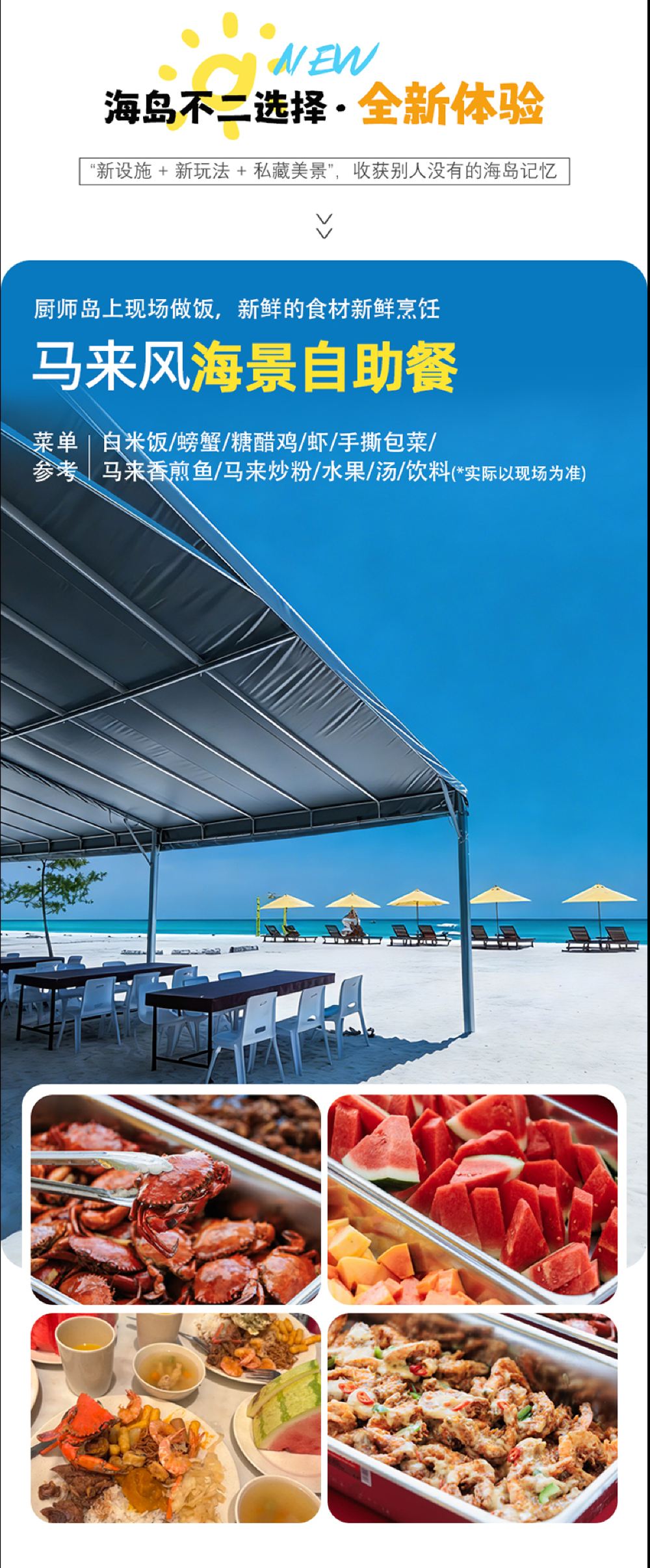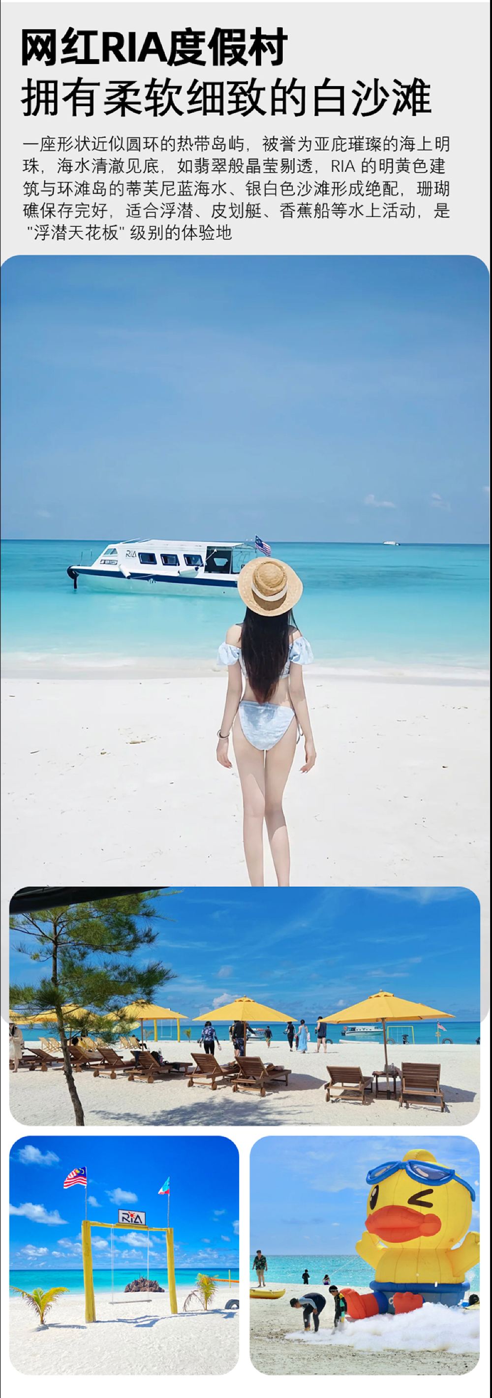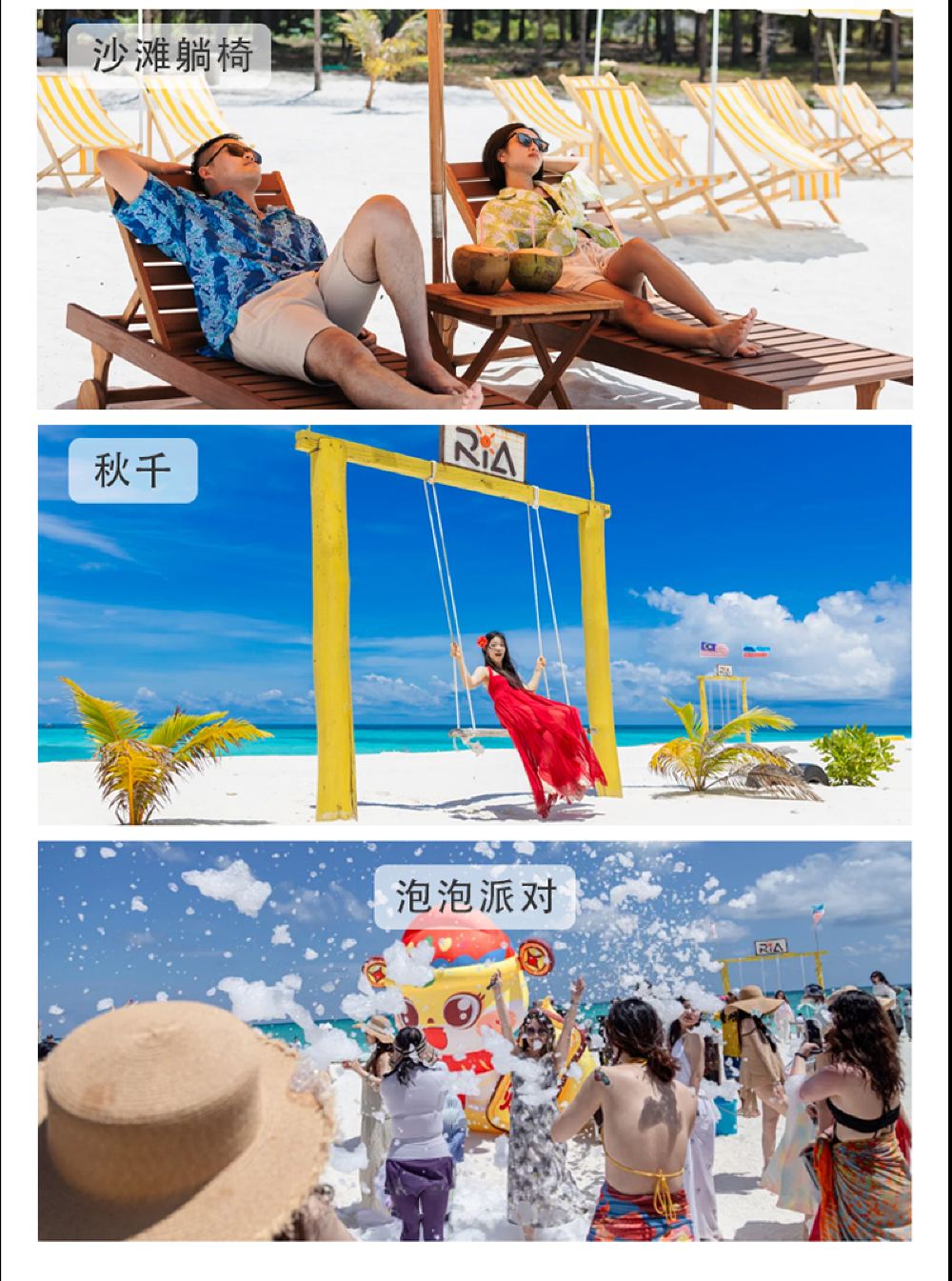 Visit the white sandy beach and enjoy a relaxing time with seaside swings, beach hammocks, and lounge chairs