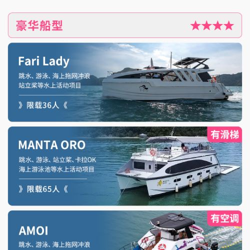 [Luxury Boat Types] AMOI, Manta oro, Fari Lady, One & Only, Princess Mary, Erica, Free Soul, Lumlee, Hercules, Athena, Eagle Magic 1, Aventurine available for selection