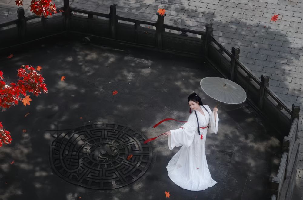 This is a white Warring States robe photographed at the Xi'an City Wall.